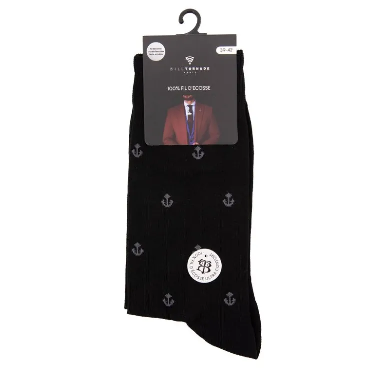 BILL TORNADE Chaussette fil d’ecosse fantaisie Homme NOIR Discount
