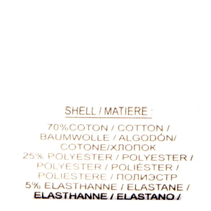 - 70% coton, 25% polyester, 5% élasthanne