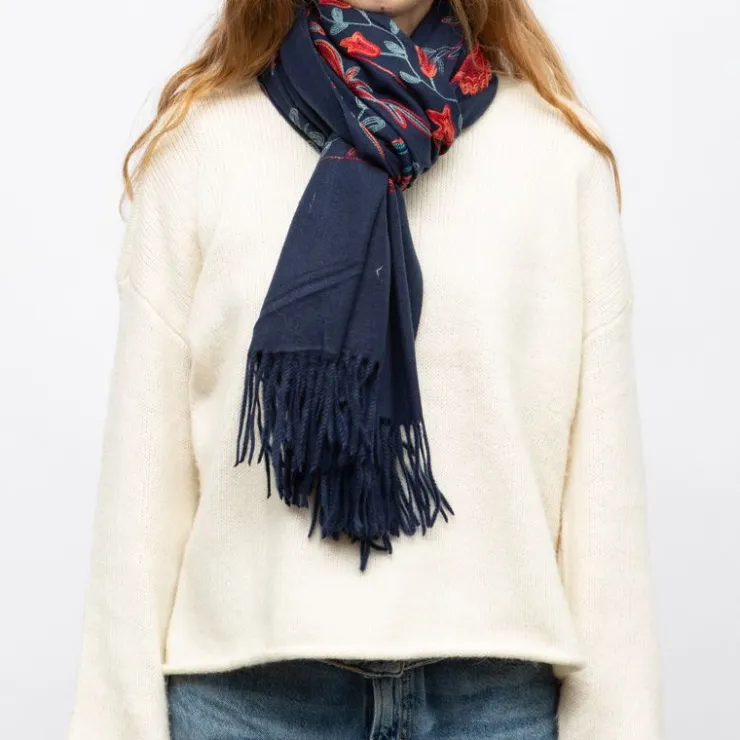 GERARD PASQUIER Echarpe broderie imprimé fleurs 70x185cm Femme BLEU FONCE Online