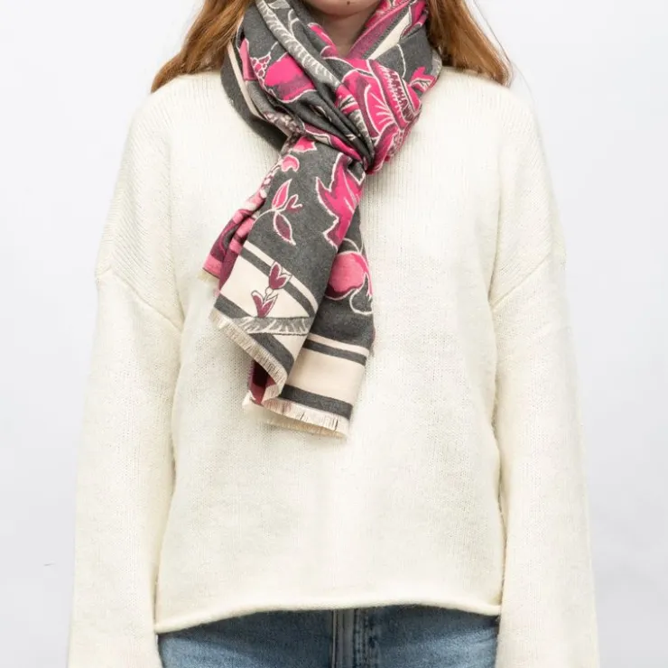 GERARD PASQUIER Echarpe imprimé à fleurs jaquard 90x180cm Femme GRIS