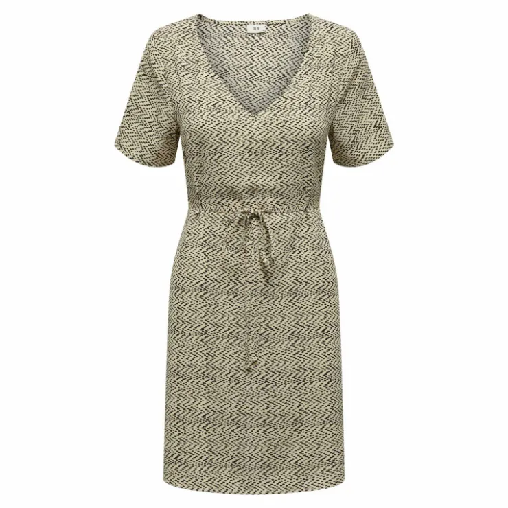 vous propose cette robe manches courtes col v cordon d’attache imprimé pour femme de la marque JDY à prix dégriffé.