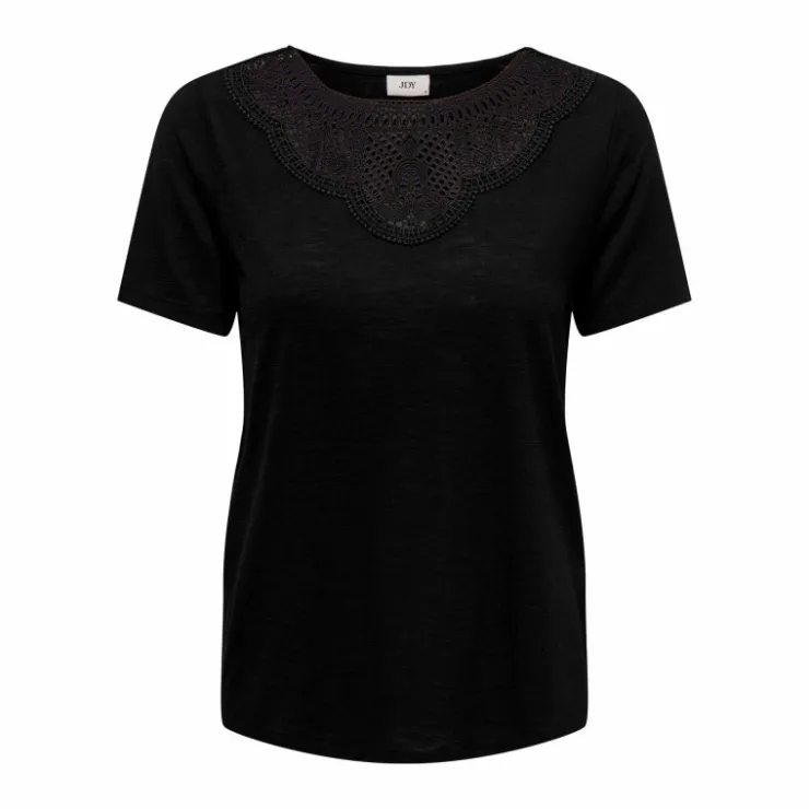 JDY Top manches courtes col rond détail dentelle uni Femme NOIR New