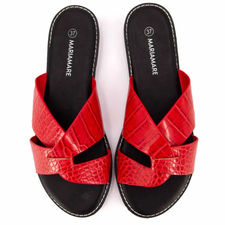 vous propose cette paire de mules plates avec talon carré à brides croisées pour femme de la marque MARIAMARE à prix dégriffé.