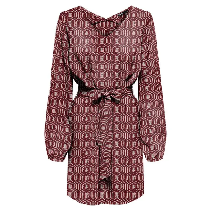 ONLY Robe cintrée col V ceinture à nouer imprimée fantaisie Femme BORDEAUX Best