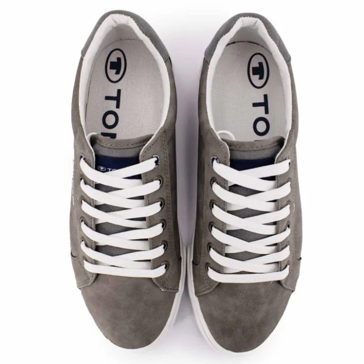vous propose cette paire de Baskets classique blanche en toile légère avec logo liseré bleu et rouge pour homme de la marque TOM TAILOR à prix dégriffé.