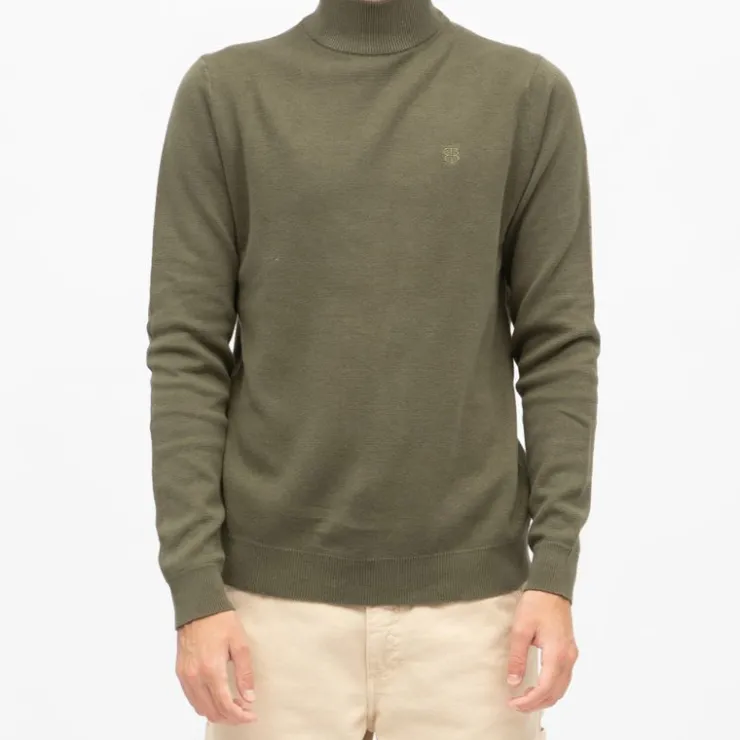 BILL TORNADE Pull coton col cheminé milano Homme KAKI Discount