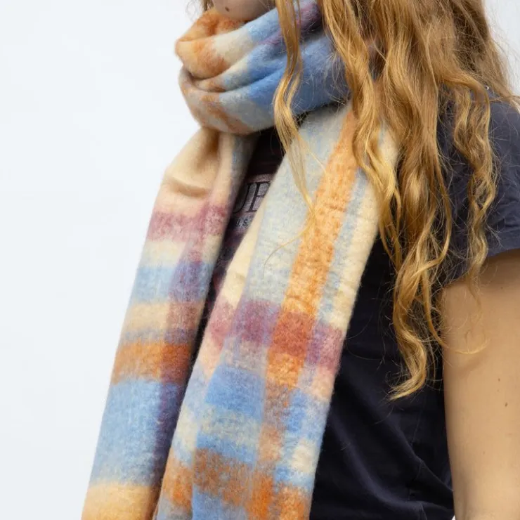 GERARD PASQUIER Echarpe à carreaux avec franges en laine 40×210 cm Femme BLEU Discount
