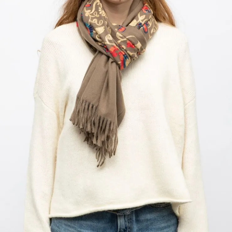 GERARD PASQUIER Echarpe brodée avec motif cachemire 70x185cm Femme MARRON Hot