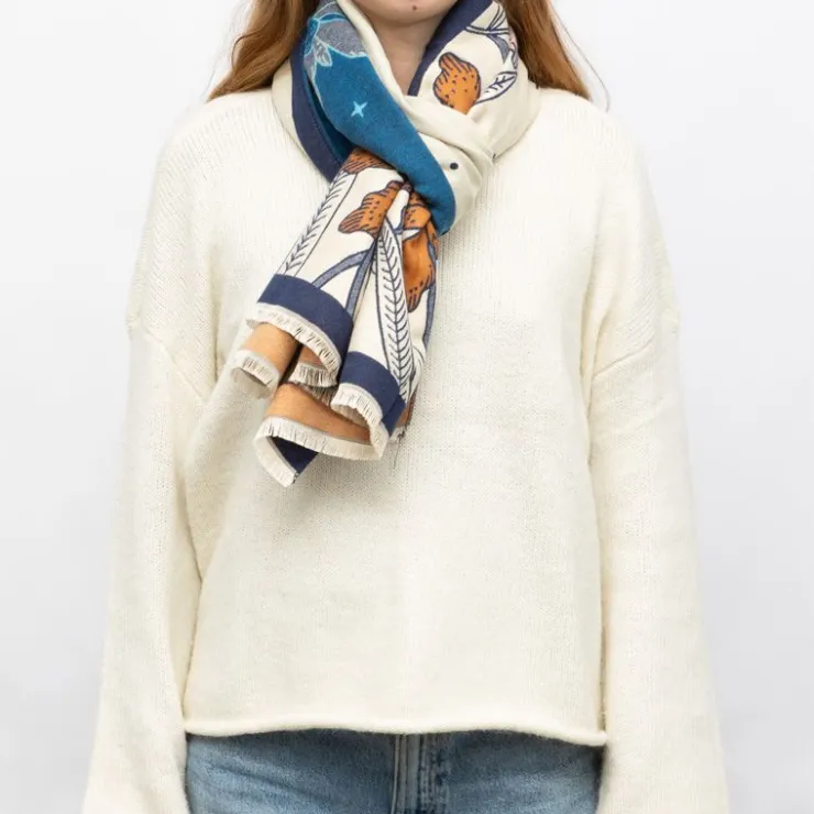 GERARD PASQUIER Echarpe imprimé fleurs jaquard 90x180cm Femme BLEU FONCE Outlet