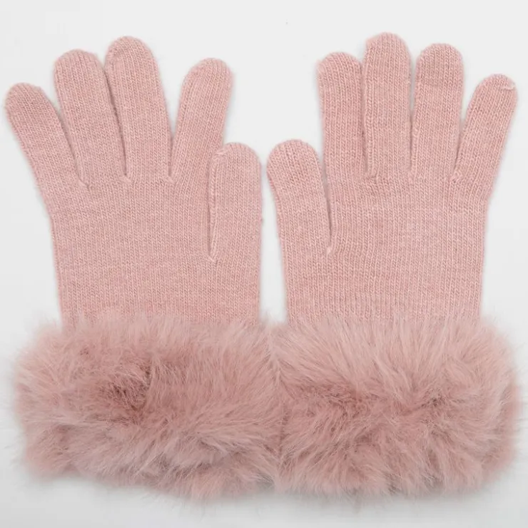 GERARD PASQUIER Gants maille avec fausse fourrure Femme ROSE New
