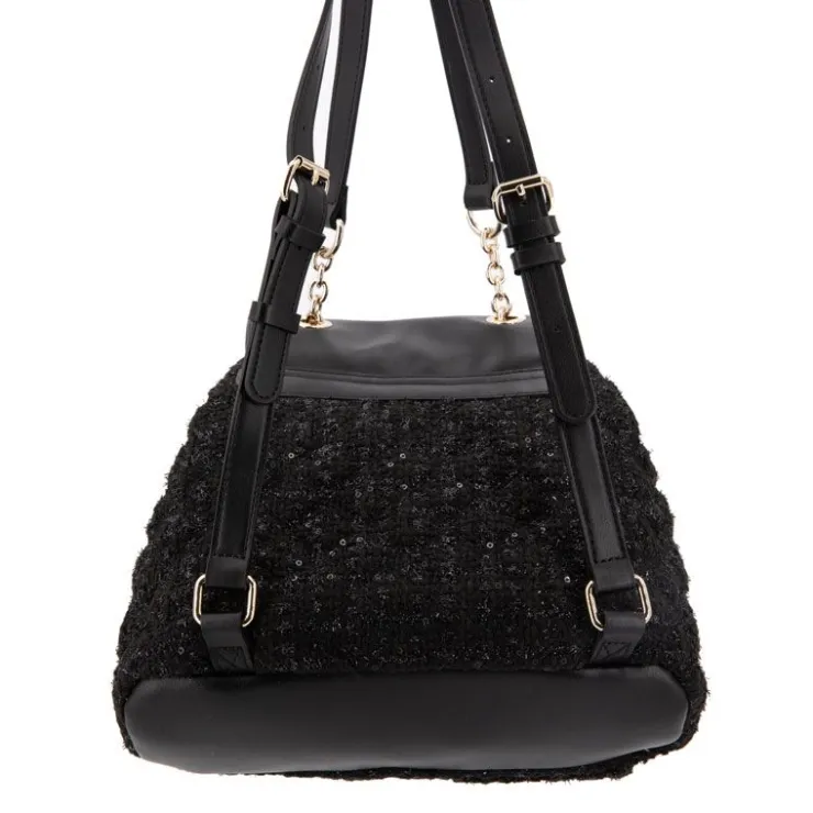 Sac bi matière tweed et similicuir lisse