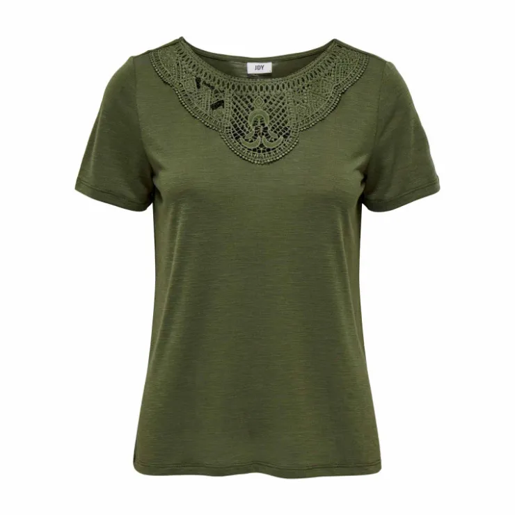 vous propose ce haut manches courtes col rond détail dentelle uni pour femme de la marque JDY à prix dégriffé.