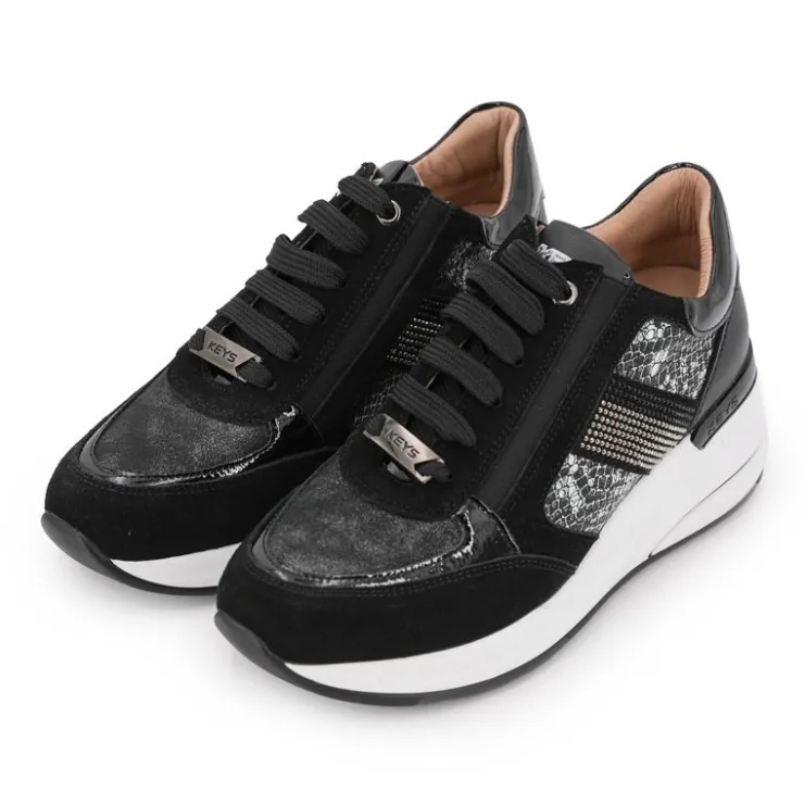 KEYS Baskets premium compensées motif croco avec bande de strass Femme NOIR Hot