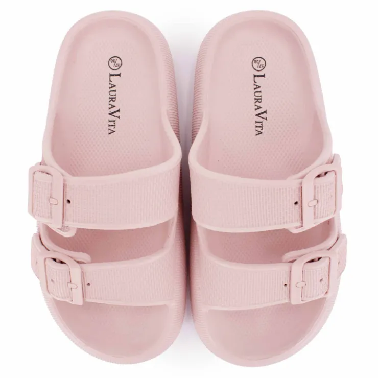 vous propose cette paire de Mules double bride nuon texturée pour femme de la marque LAURA VITA à prix dégriffé.