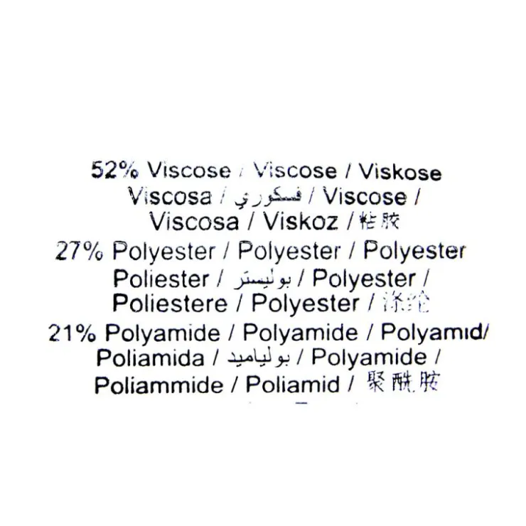 - 52% viscose, 27% polyester, 21% polyamide