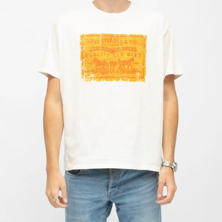 - Grand motif central représentant l’étiquette en cuir **Levi Strauss & Co.** (Two Horse Pull).