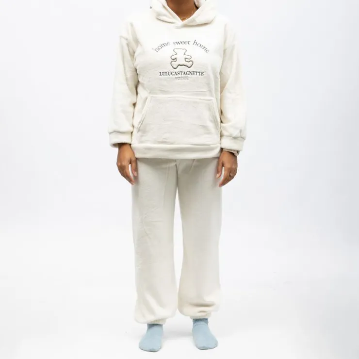 LULU CASTAGNETTE Pyjama polaire à capuche avec broderie Femme BLANC ECRU Discount