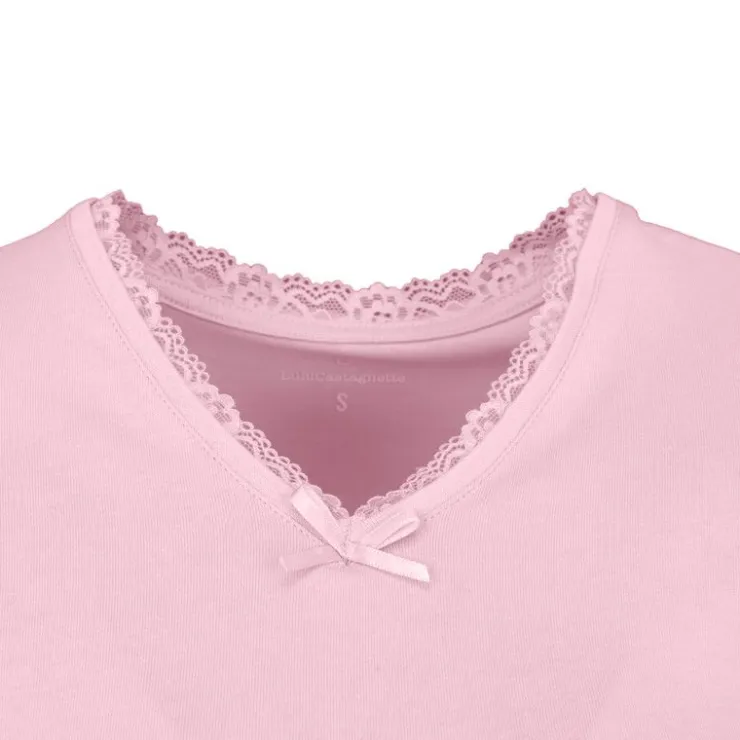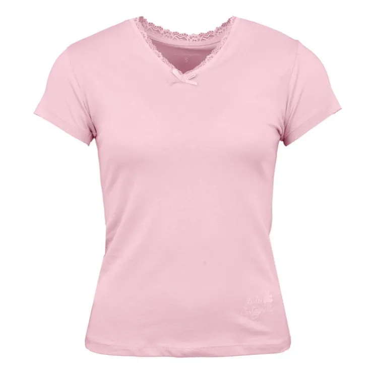 LULU CASTAGNETTE Tee shirt manches courtes col V dentelles lona Femme ROSE CLAIR New