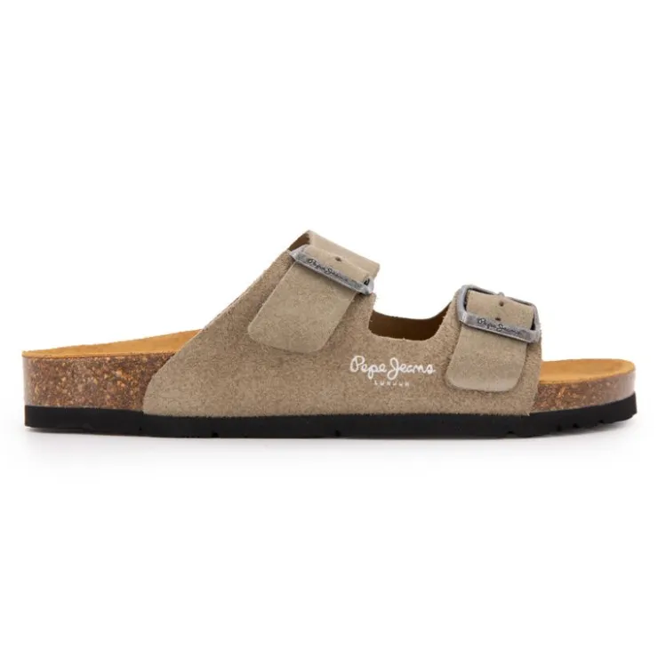 PEPE JEANS Mules suédine taupe double bride Femme BEIGE