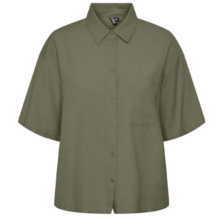 PIECES Chemise manches courtes uni Femme KAKI